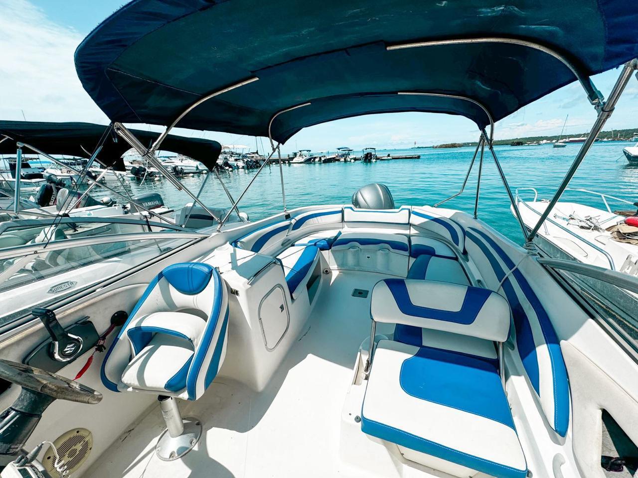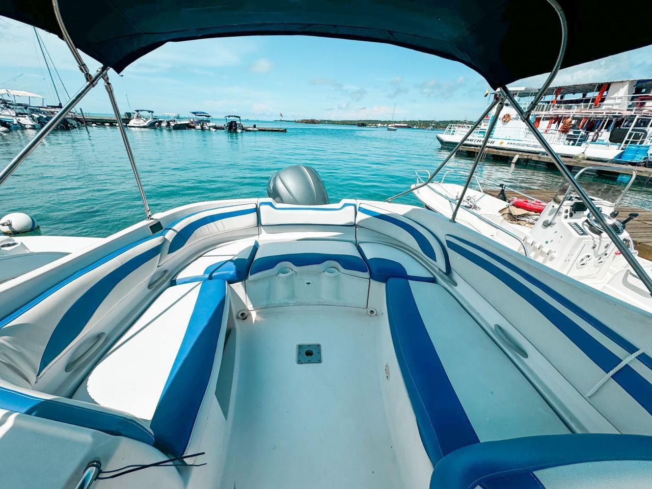 Embarcación tipo lancha deportiva, equipada con asientos cómodos y excelentes instalaciones para que disfrutes de una mañana, tarde o día completo en la bahía. Podrás llevar tus bebidas favoritas y mantenerlas frías en una práctica nevera a bordo. Además, cuenta con sistema de sonido al que puedes conectarte vía Bluetooth para reproducir tu playlist preferida y ambientar tu recorrido.