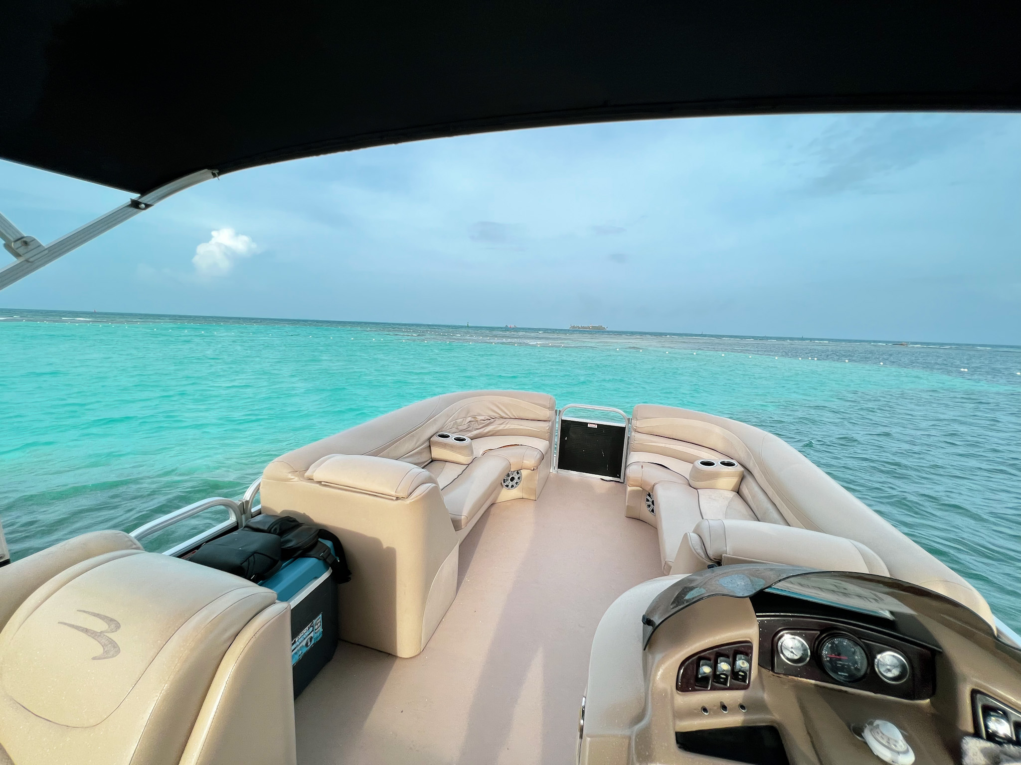 Embarcacion tipo ponton "planchon" con lujosos muebles e instalaciones, en la cual podrás disfrutar de una mañana, tarde o dia completo en la bahía, también podrás llevar tus bebidas preferidas. En él encontrarás una cómoda nevera donde podrás mantener tus bebidas frías. Cuenta con sonido, pero si prefieres podrás conectarte via bluetoooth y disfrutar de tu play list favorita.