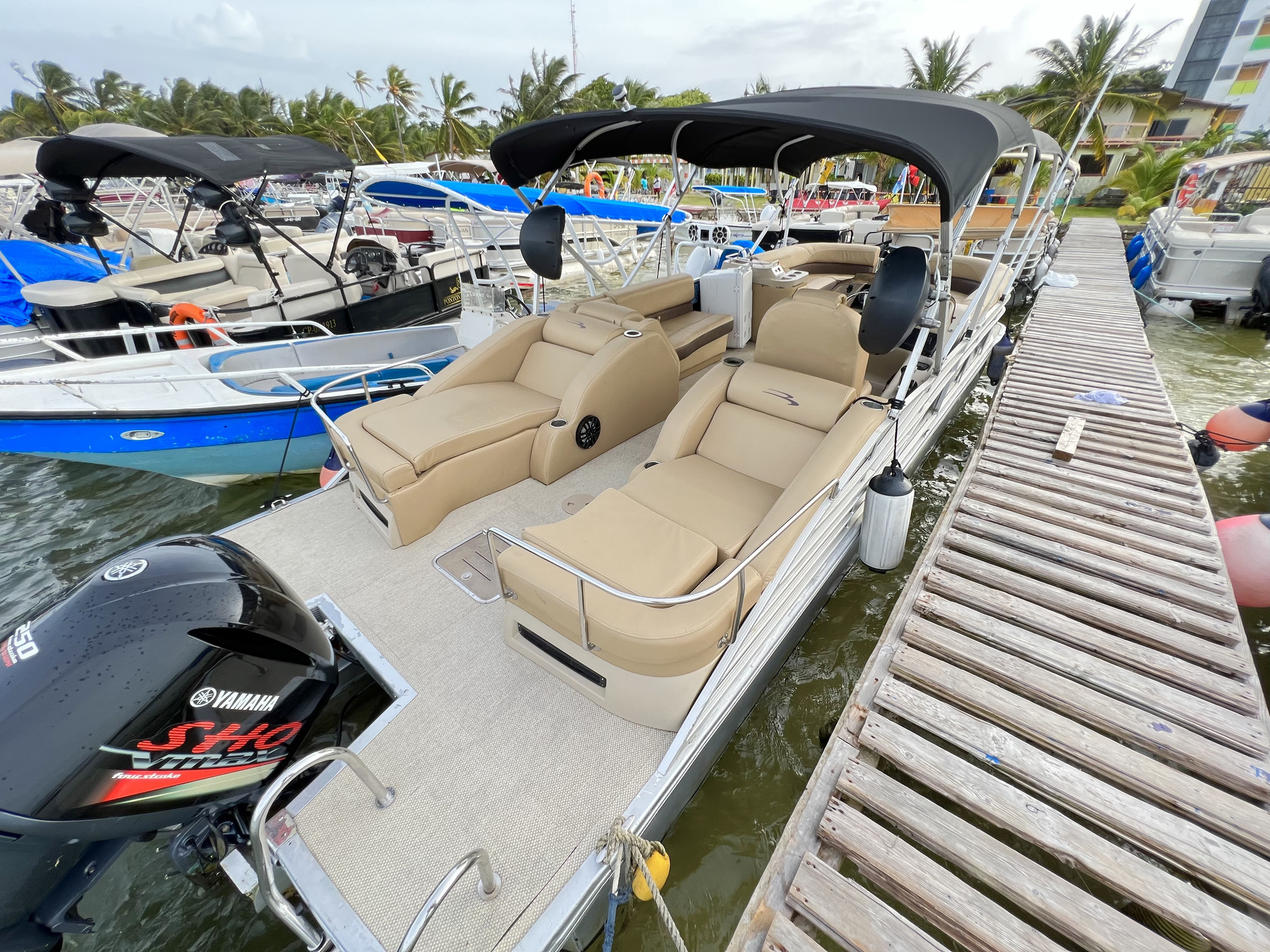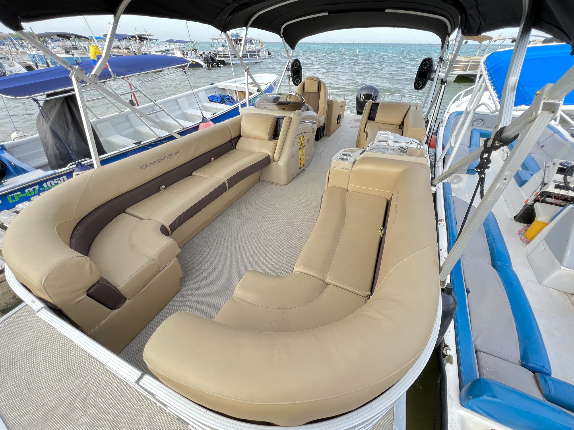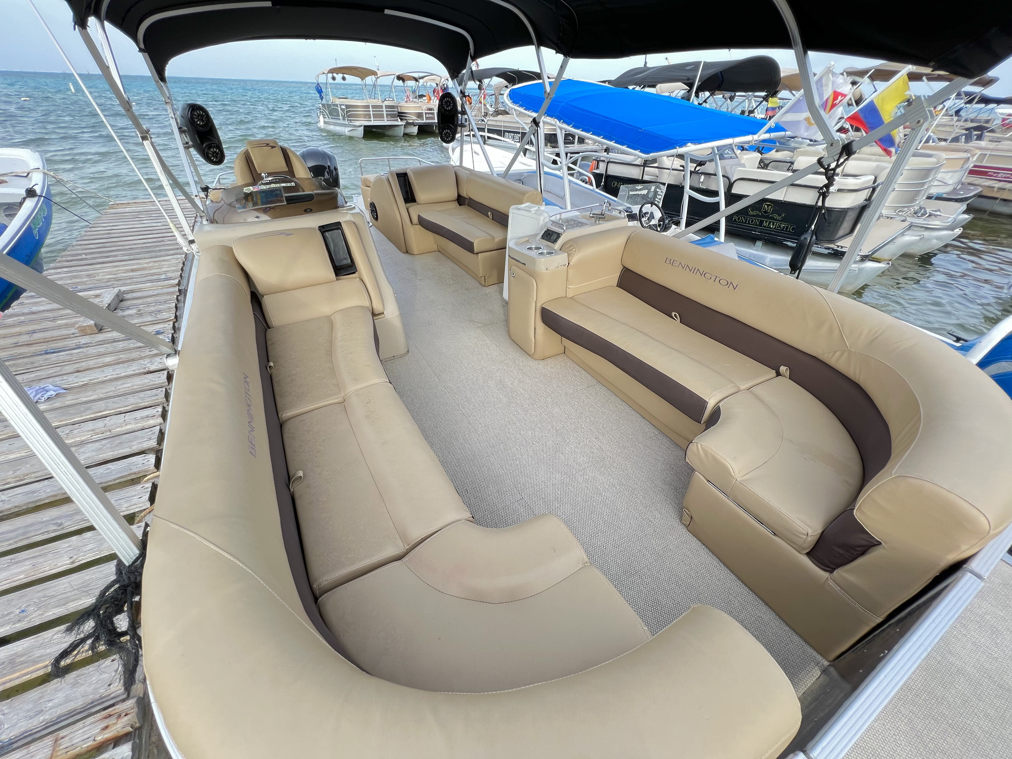 Embarcacion tipo ponton "planchon" con lujosos muebles e instalaciones, en la cual podrás disfrutar de una mañana, tarde o dia completo en la bahía, también podrás llevar tus bebidas preferidas. En él encontrarás una cómoda nevera donde podrás mantener tus bebidas frías. Cuenta con sonido, pero si prefieres podrás conectarte via bluetoooth y disfrutar de tu play list favorita.