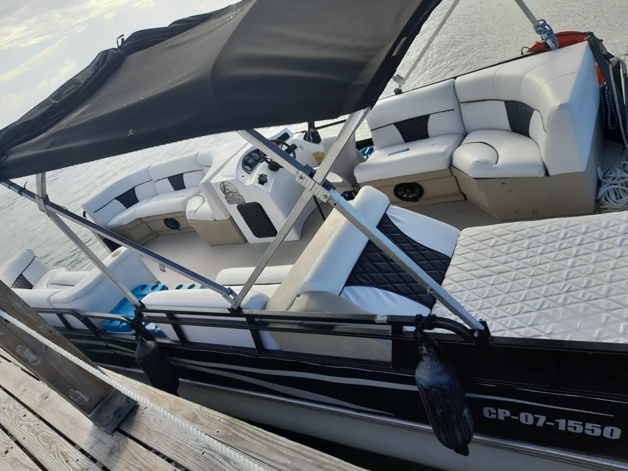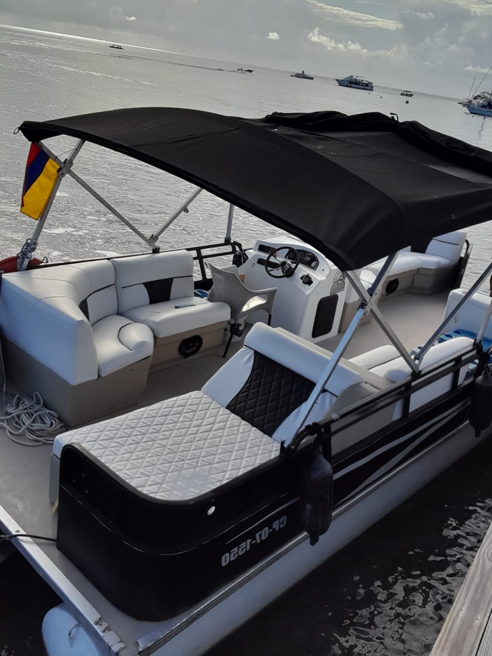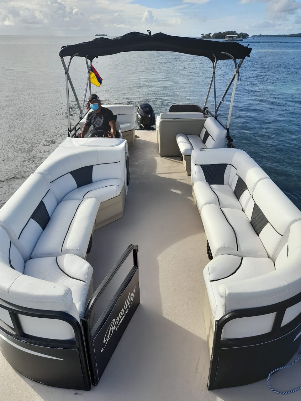 Embarcacion tipo ponton "planchon" con lujosos muebles e instalaciones, en la cual podrás disfrutar de una mañana, tarde o dia completo en la bahía, también podrás llevar tus bebidas preferidas. En él encontrarás una cómoda nevera donde podrás mantener tus bebidas frías. Cuenta con sonido, pero si prefieres podrás conectarte via bluetoooth y disfrutar de tu play list favorita.