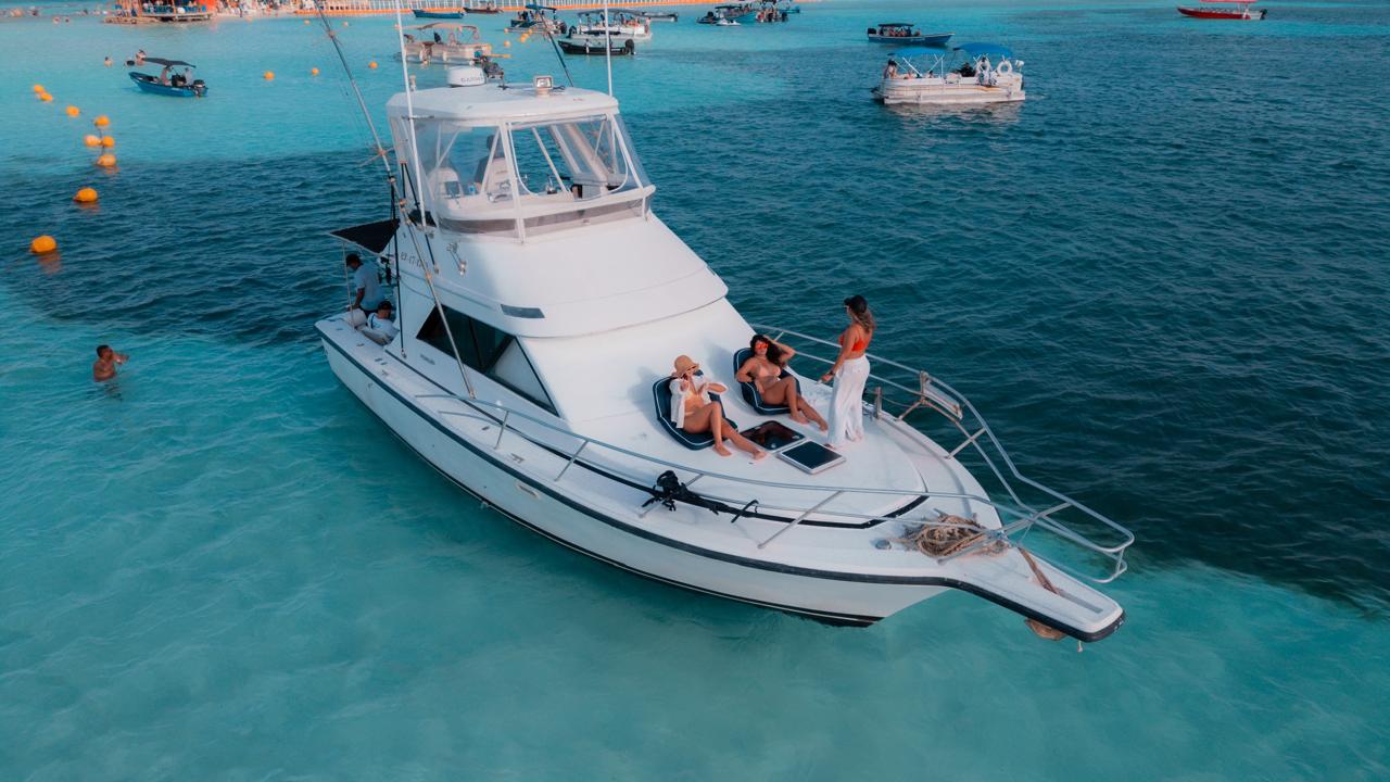 Capitan y auxiliar, Recorrido, Embarcación a disposición del cliente, Nevera con hielo, Sonido, chalecos salvavidas y Obsequio,