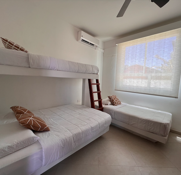 Entrada independientete, terraza con vista al jardin, televisión, closet, cajilla de seguridad, aire acondicionado, ventilador.