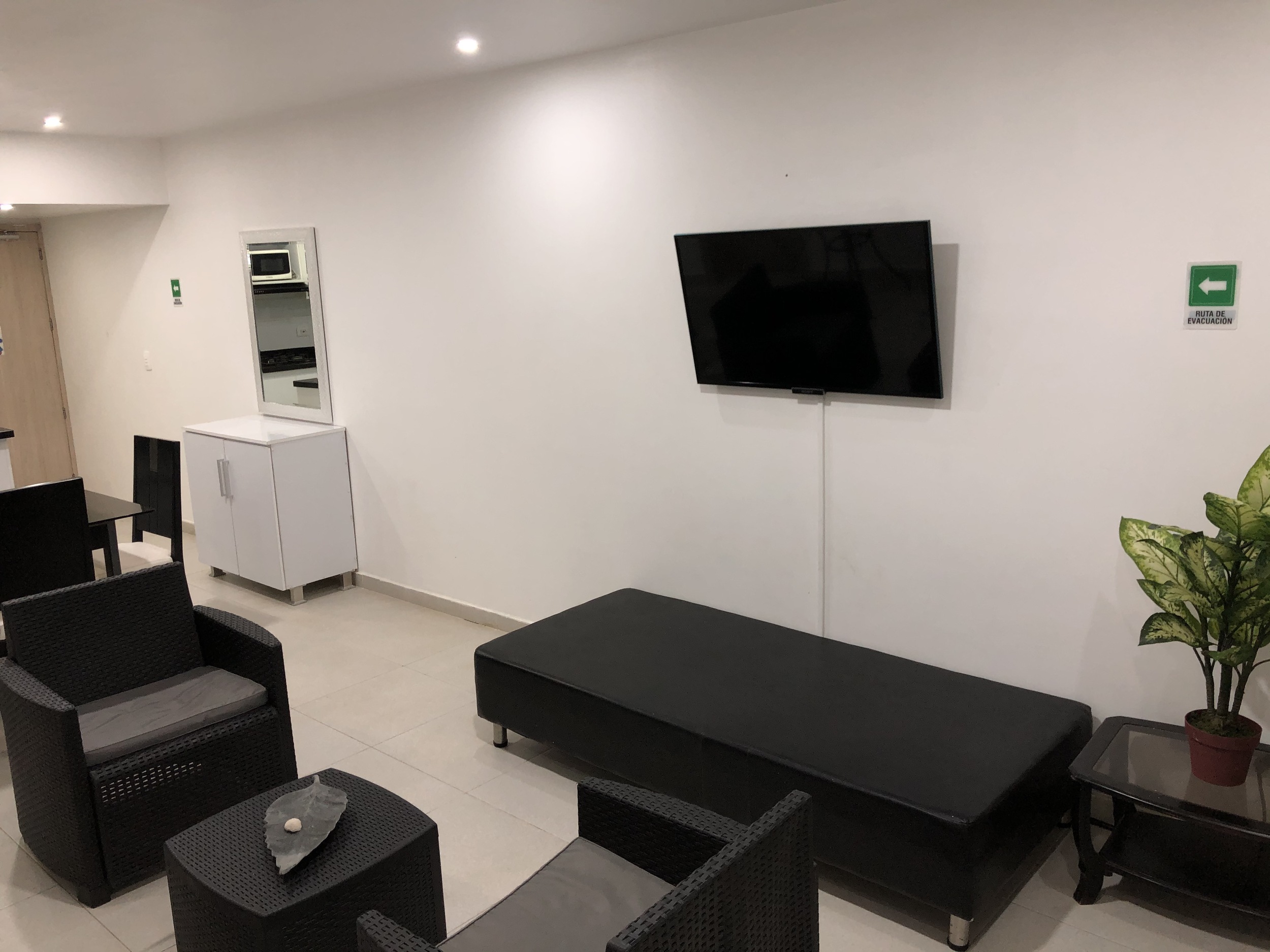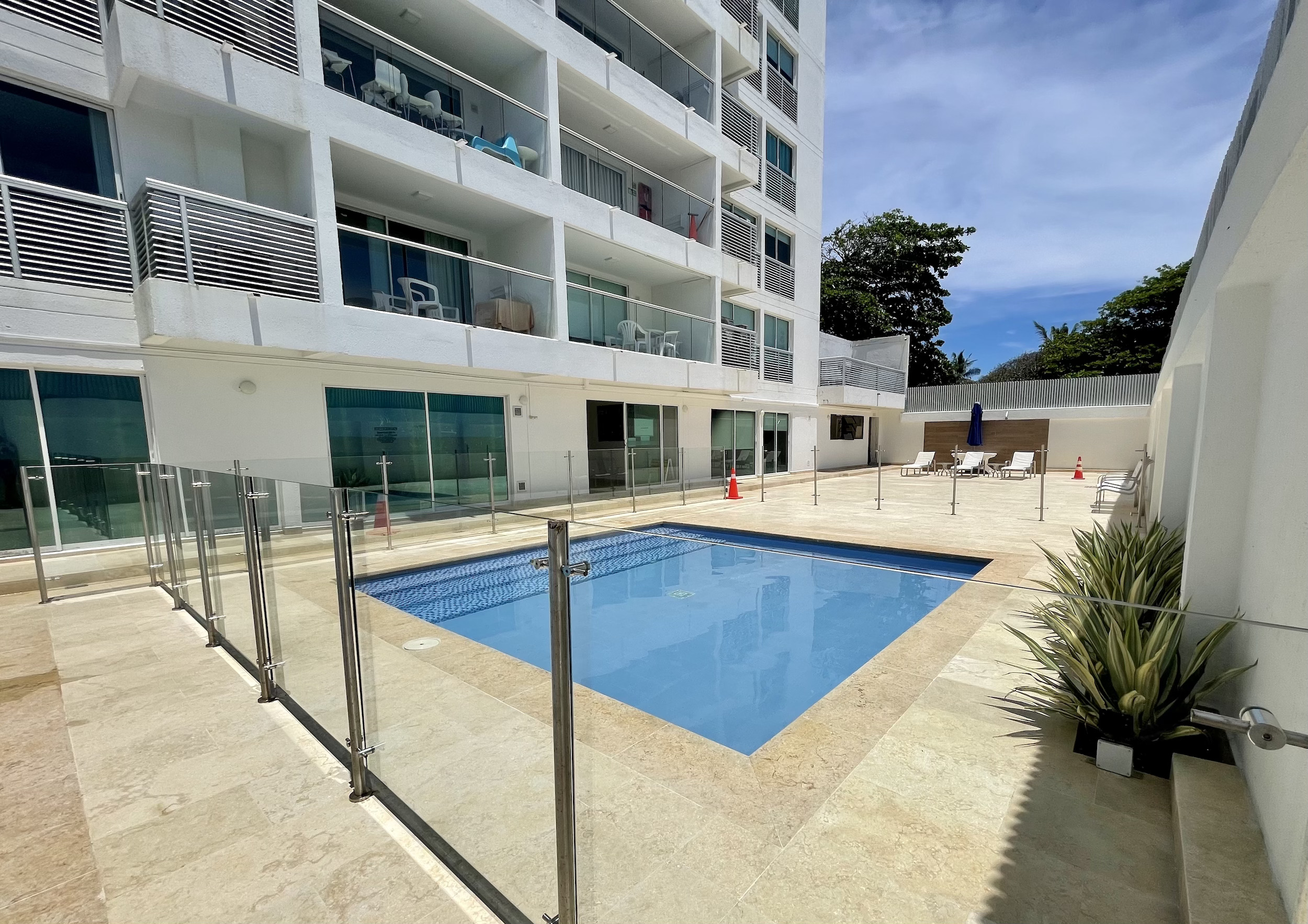 El edificio cuenta con una piscina para niños y adultos, así como un lobby para su mayor comodidad. El apartamento tiene un estilo moderno, con muebles y accesorios actuales. Cada espacio cuenta con su propia televisión inteligente con televisión por cable, aire acondicionado y cuenta con una cocina totalmente equipada con vajilla y batería de ollas. Además, cuenta con Internet y agua caliente para su comodidad.