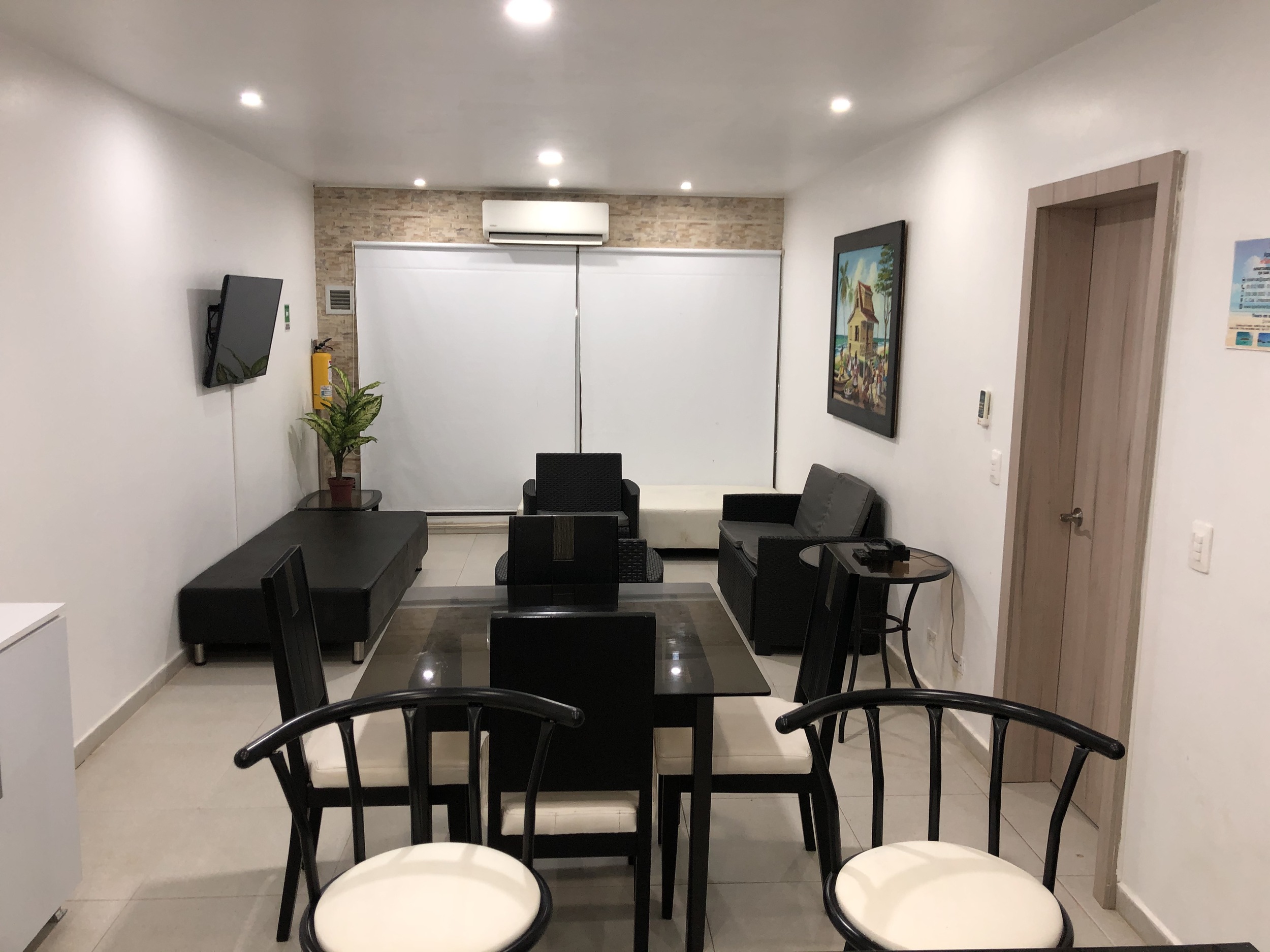En los alrededores del apartamento, encontrará numerosos almacenes, perfumerías, restaurantes y bares, incluyendo lugares populares como Juan Valdez, El Corral y Beer Station. También se encuentra cerca de hoteles reconocidos como el Hotel El Dorado, Lord Pierre y Decameron Aquarium.