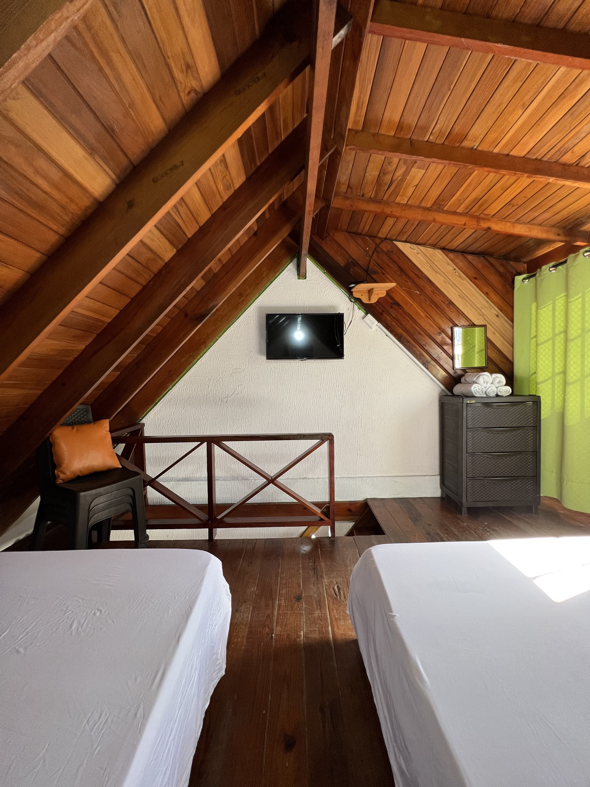 Este acogedor apartamento tipo dúplex está ubicado en el centro comercial Unisanandres, a solo unos pasos de las hermosas playas de Spratt Bight. Equipado con cocina integral, aire acondicionado, Internet y TV. El centro comercial cuenta con recepción, duchas y una variedad de negocios para su comodidad. Disfrute de su estadía en San Andrés en este cómodo hospedaje.