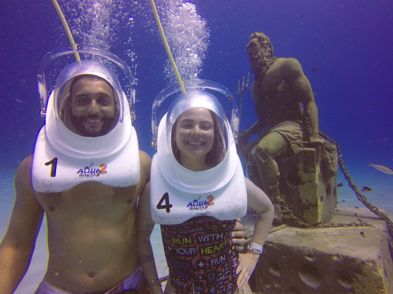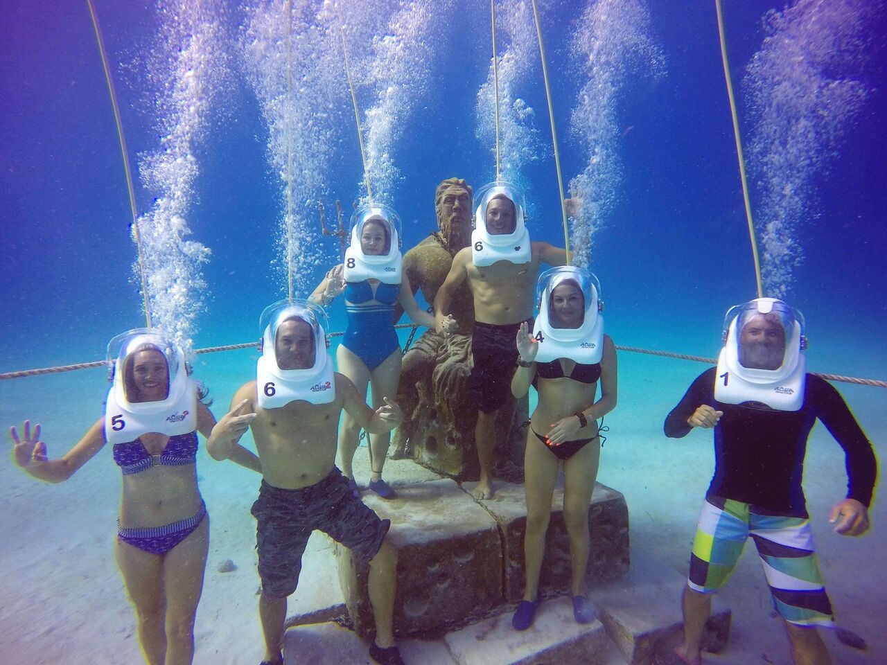 Descubre la magia de caminar bajo el agua con Aquanautas, utilizando cascos innovadores y seguros que te permiten respirar naturalmente. Explora la flora y fauna marina, alimenta peces y admira la estatua de Poseidón, todo guiado por un instructor experto que capturará los mejores momentos en fotos y videos.